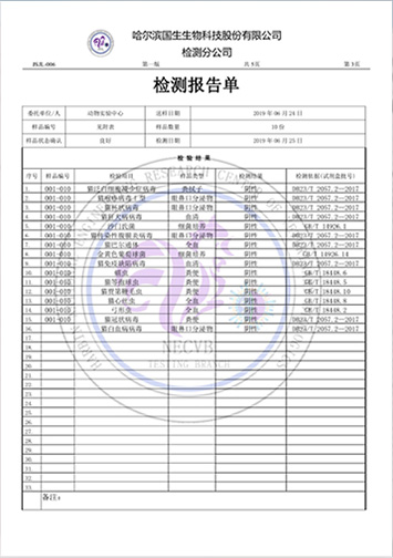 | 序號 | 病原 | 檢測類別 | 檢測方法 | 檢測結果 |